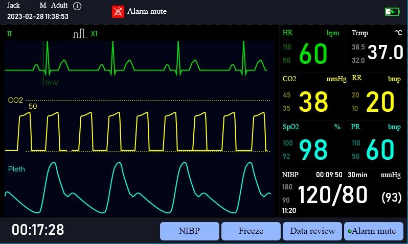 · Monitoring ECG, EtCO2, Pleth, HR, RR, SpO2, NIBP, etc.