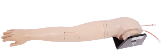 该静脉输液手臂模型是第五代产品,可实现手背静脉网以及肘部静脉网的输液、穿刺及注射训练。该产品由硅胶材料制成,触感和外观都极度仿真,代表了天堰科技人体模型的较高水准。