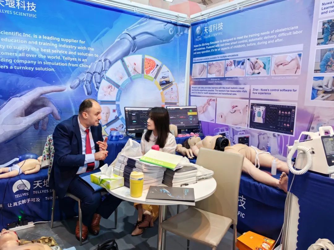 在本次盛会上,天堰科技携多款高科技医学模拟产品惊喜亮相。作为医疗模拟行业的领军企业,天堰科技一直致力于为全球医疗行业提供高质量的产品和解决方案,近年来公司愈加重视海外市场,不断谋求与国际市场接轨。本次参展产品包括智能分娩模拟人女娲、SMART心肺复苏模拟人(婴儿)、自救互救模拟人、静脉输液臂V等。这些产品不仅在国内市场备受好评,还具有较强的国际竞争力,能够满足国际医疗模拟行业对高品质产品的需求。